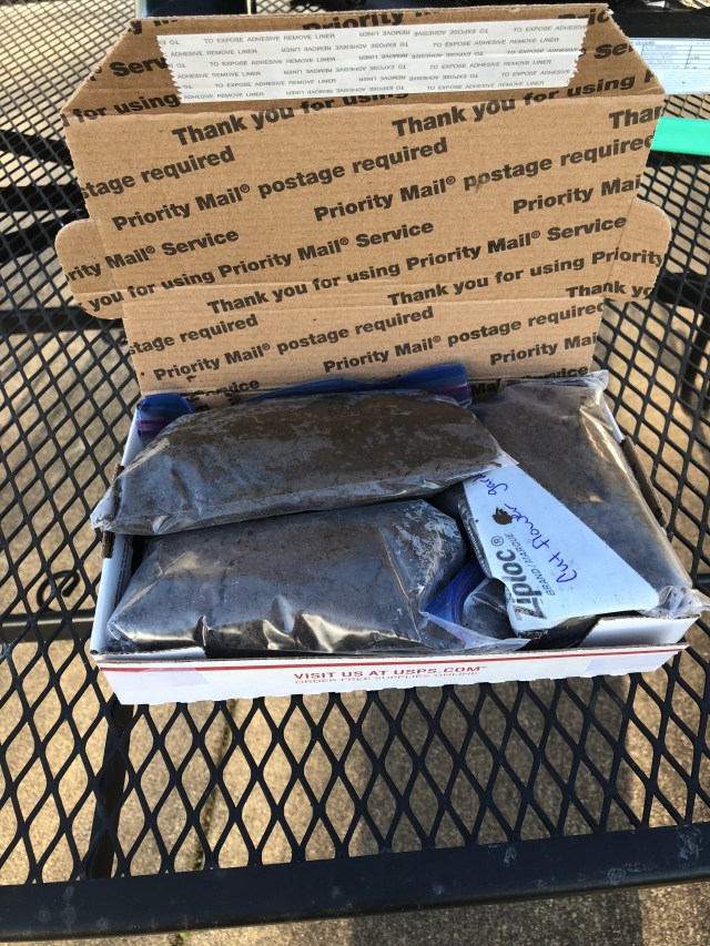 So I had to empty the bags into a pot & mix the dirt up to be sure to get a good sample of all five holes….
