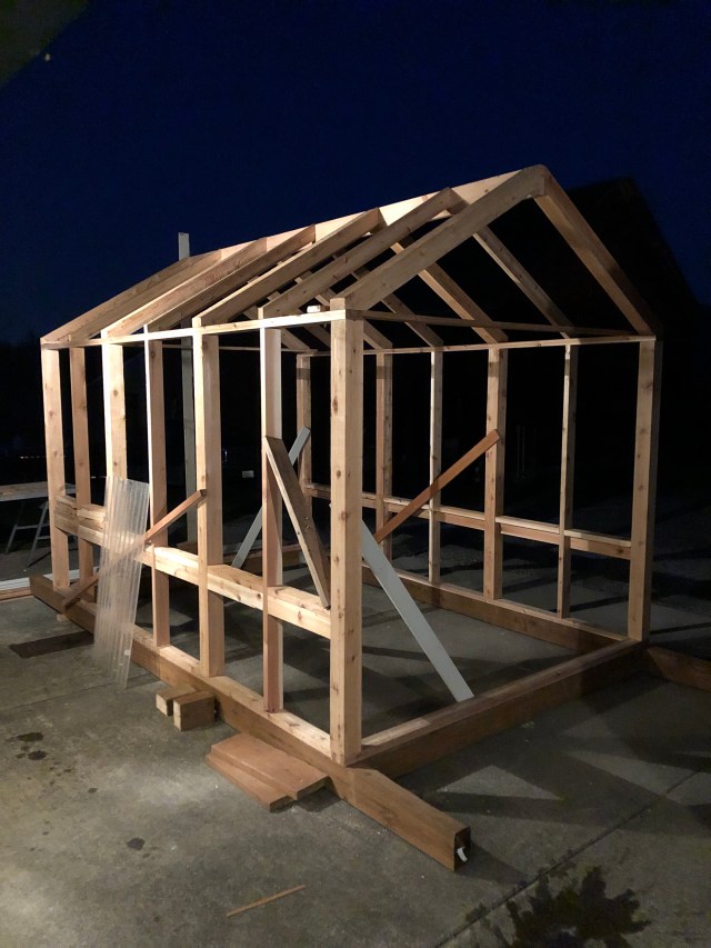 Joe chose to use utility grade materials because it is cheaper and the dimensions are easier to work with. It’s a greenhouse, not a house, and it’s ours, not for a client.