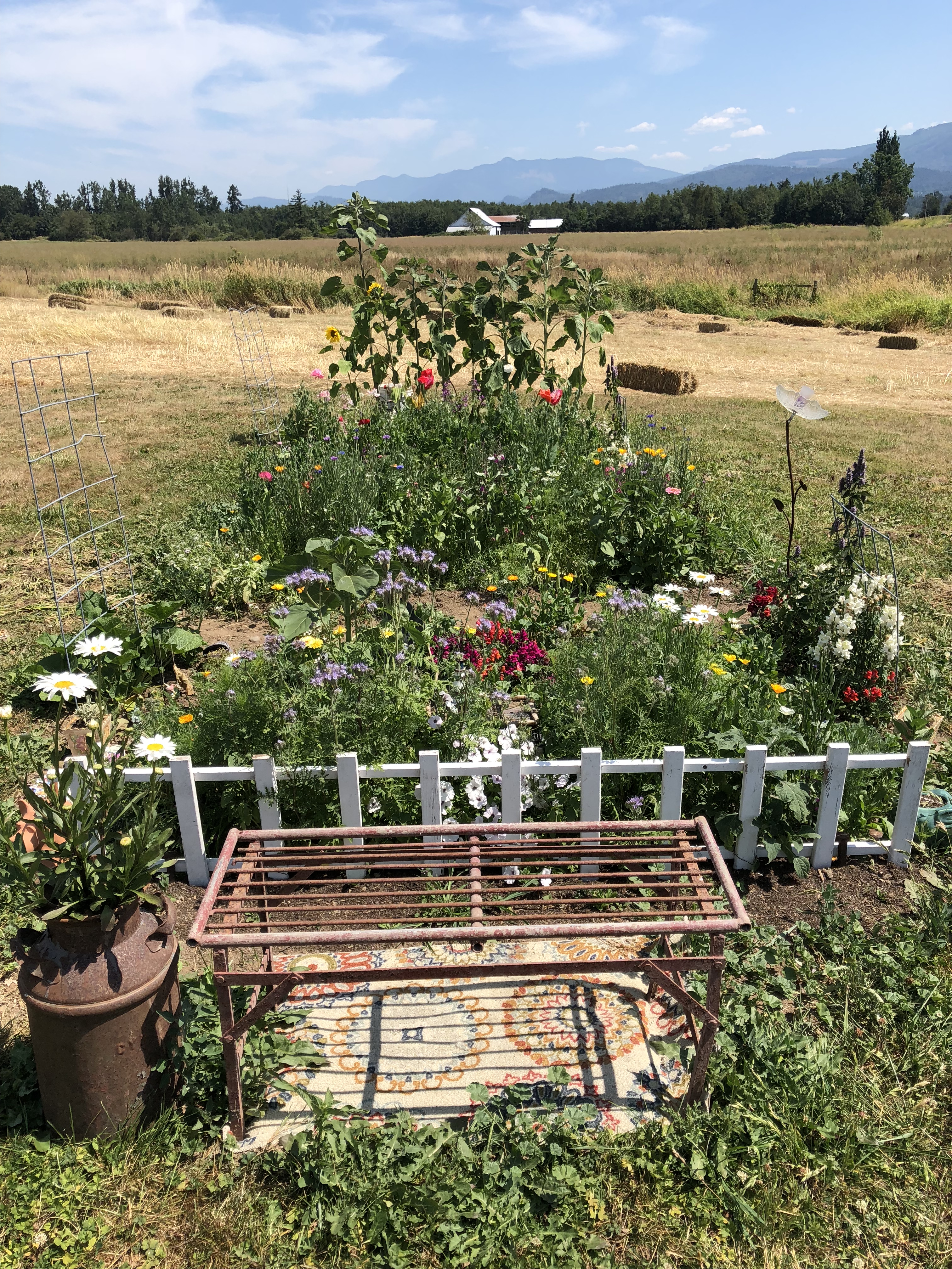 I’m only taking a look at the cut flower garden, there’s several other spaces where we grew lots of other flowers, food, and gourds, but this is one I’m focusing on this year. It’s not as big and magical as many people’s I have seen, but it’s my first year, and I’m doing what I can with it. The plan is to make it four times bigger this year – a bit ambitious, but we have a plan!