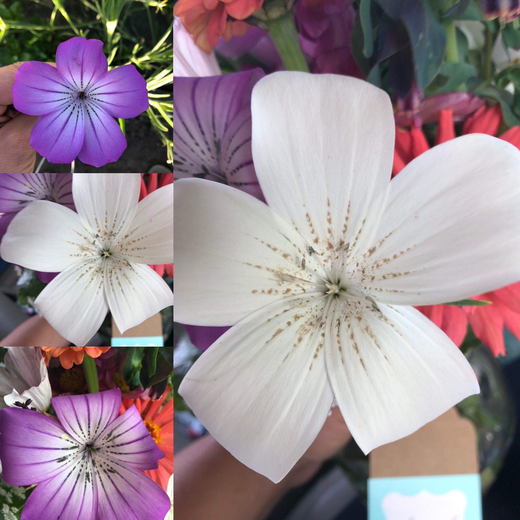 The Corn Cockle-(pleasantly surprised I have purple mixed in with the Ocean Pearl) -are such a lovely piece of perfection! Long stems, petite blossoms-and such pretty smooth petals!
