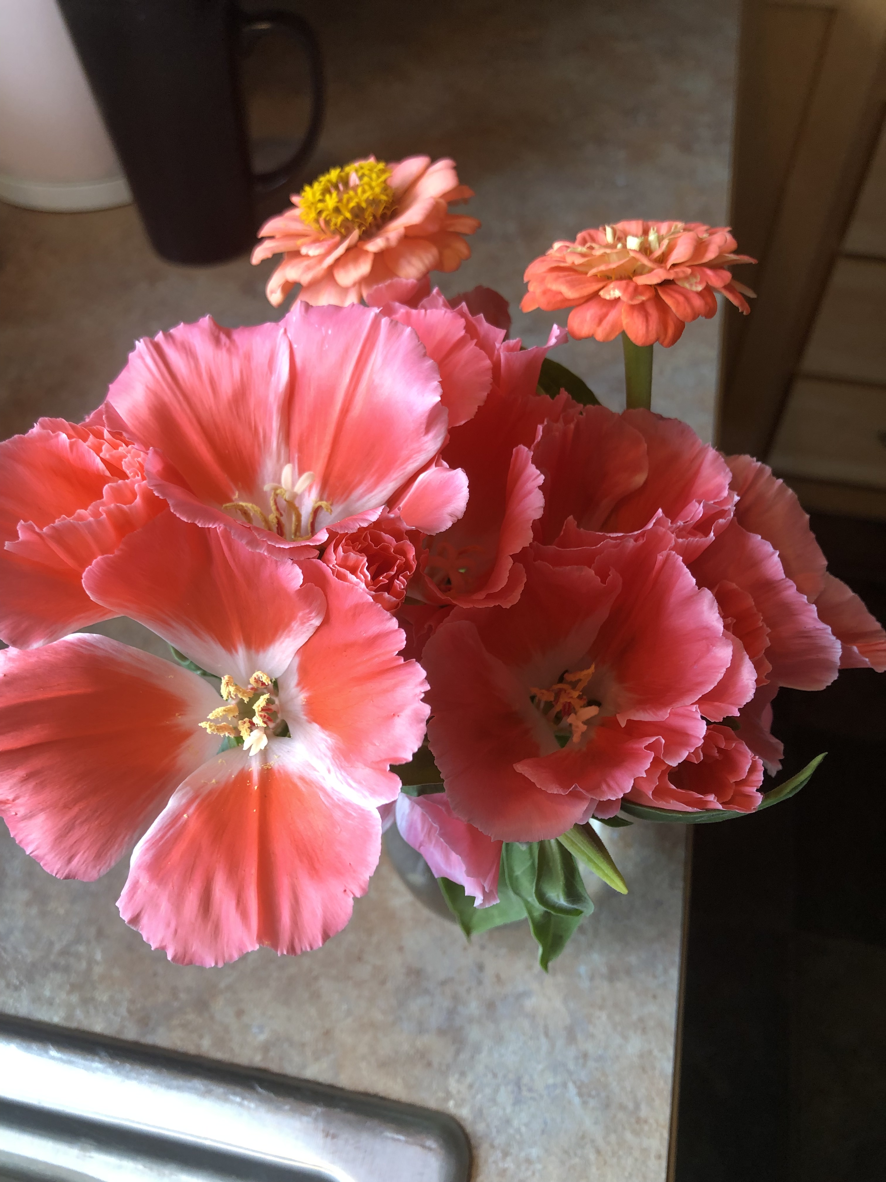 I’ve discovered a few things. Floret pictures on her seed collections are very misleading – take note, never trust pictures – I should have known that, but I didn’t pay attention, I mostly bought the seed collections to have something that matched and I could make bouquets out of, I need to trust myself more. One of the seed collections I couldn’t plant two of the flowers until late May due to having to be direct seeded, so obviously they are not going to be ready at the same time as the ones I planted in the green house, so they aren’t even going to be in a bouquet together…putting things like that together next year will be important. I’ve also discovered I need more filler….not sure what type of filler, but something more….I’ll poke around and see what I can figure out.