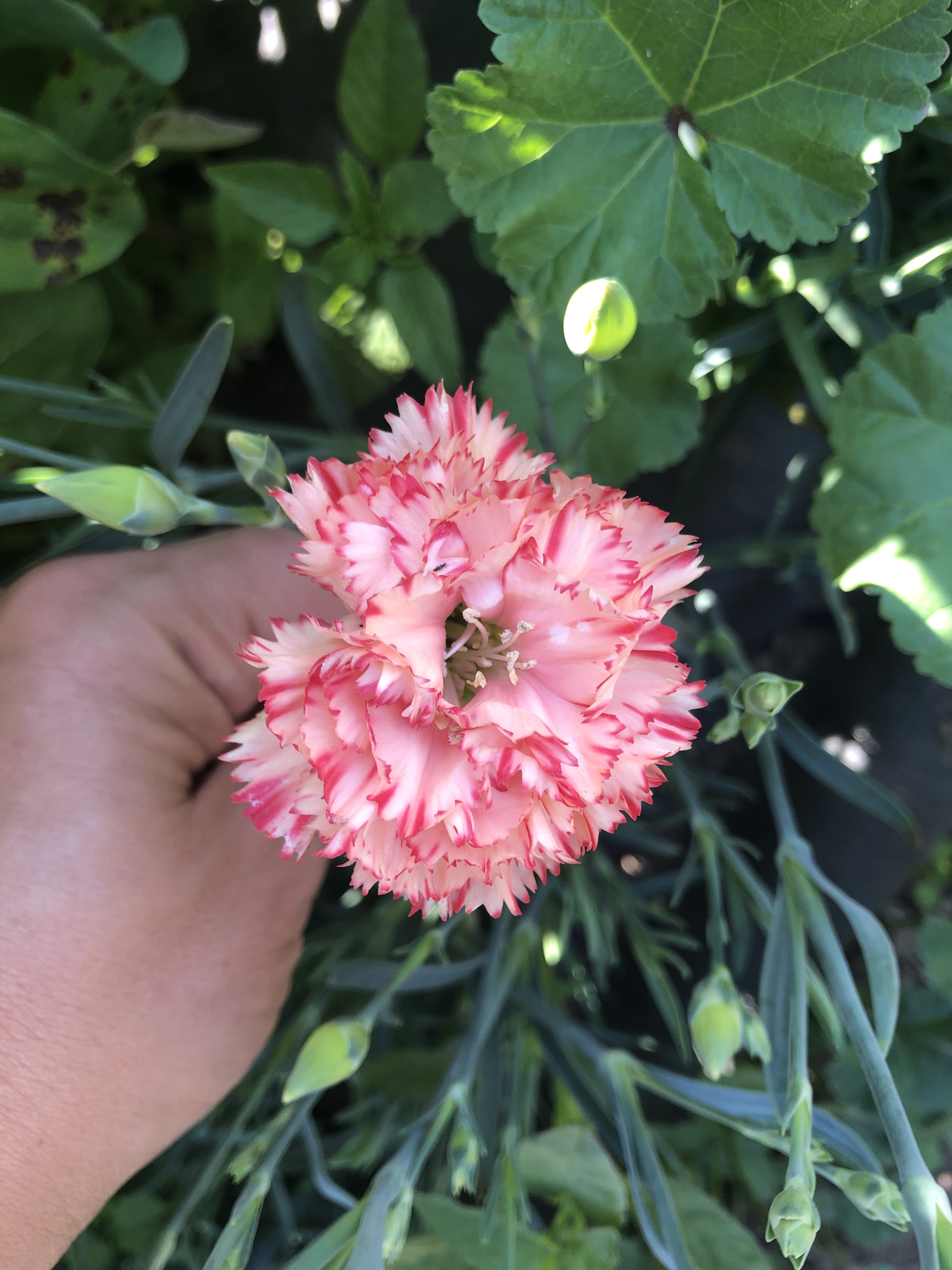 My Carnation….the one’s I planted January 27th….that didn’t do super well, struggled and I fought with….yeah, those….they finally made an appearance! It was tiny, but mighty – orange in color with burgundy tips! Very pretty! I’m hoping the other 30 or so will also show their pretty faces.
