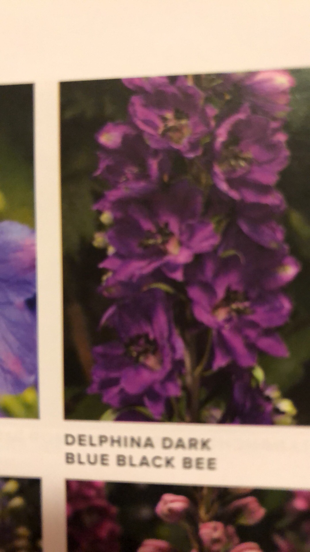 Delphina Blue Black Bee-it’s a dwarf variety – but still gets 18-22 inches tall – perfect for bouquets, and will do better when we get our high winds — and I hear they are interesting when they dry! It will be a fun addition to my perennial garden and dried flower bouquets next year!