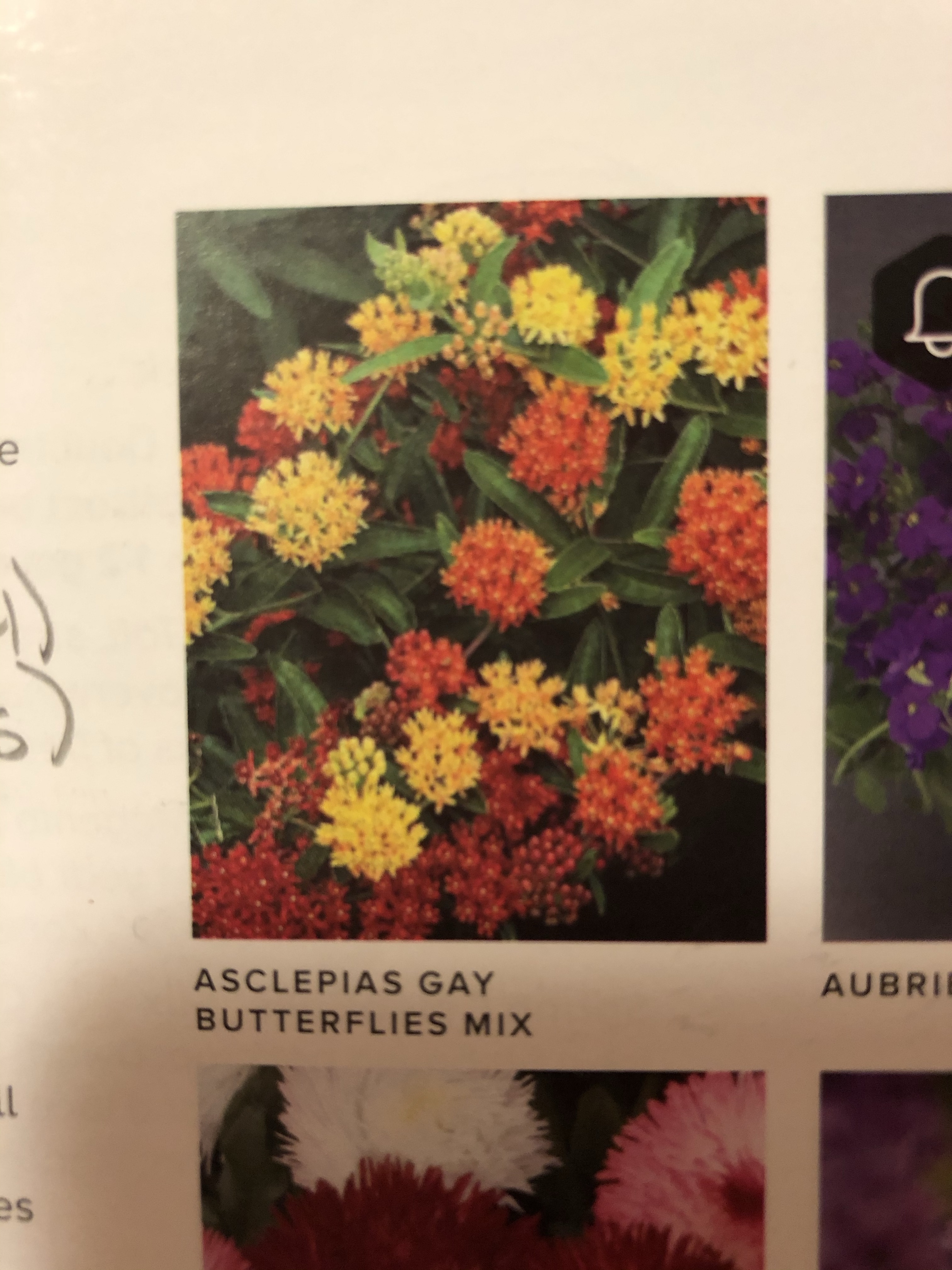 Asclepias Gay Butterflies Mix – I have no idea what the common name is – or what it really looks like, but it gets tall, and it looks like it has neat flowers and foliage – it will be a nice addition to the perennial garden!