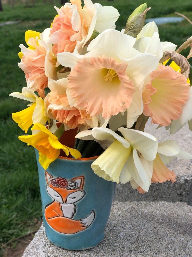 I finally got around to weeding raised bed number 3. Holy smokes, it was like I was ripping out sod from the lawn, Obviously, I failed to take care of it….I’m not sure I weeded it at all last year…..or maybe I just didn’t do anything with it in the fall…? Sadly the daffodils coming up in it are tiny and a bit wimpy….maybe because it was so compacted with grass? It’s weeded now, but there is about an inch of the daffodil that is now exposed that wasn’t exposed before, and I didn’t have time to add dirt to it yesterday, so hopefully they will be okay until I add dirt this morning before we leave for our little adventure today with Bruce and Jill. It took a lot of work, but it’s finished, and hopefully I will be able to take care of it this year to avoid that situation. I did find some rotten, smooshy bulbs in there, which would explain the lack of daffodils coming up. Mother Nature is teaching me that perhaps our property just isn’t made for things I wish it could do. There are limitations….but the only way I will find out what they are is by trying things….then I have to accept them. I’ve accepted that we don’t get to grow tulips – sad but true….I haven’t tried growing them in pots yet, maybe I will try that next year?