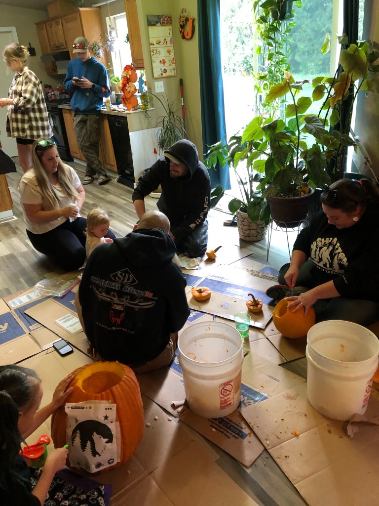 We had the loveliest of times at the kids’ house today. They hosted a pumpkin carving party, such a delight to see how the kids are growing and blossoming into even more amazing adults. Our daughter-in-law made up all sorts of goodies, pizza was served, cupcakes were made – a ton of work for sure-beautifully done!
