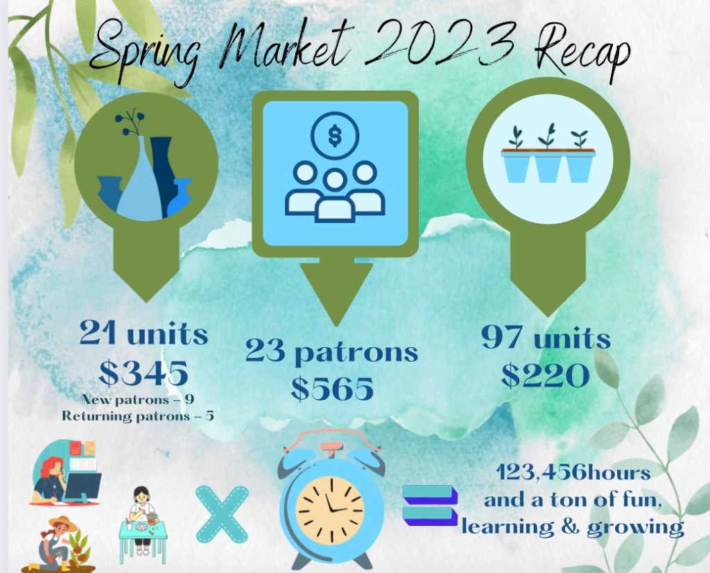 I will add my info-graphic to the post here – something to be looked at later, and something that other potters or flower growers might be able to look at to gauge what it looks like to sell items. Every location is different, every market is different, it’s just being honest and transparent about how “well” I did at a market, and not using vague answers like “I did great” or “it went well”. It’s an extreme disservice and can be super discouraging to those who sell at markets to not have honest feedback.