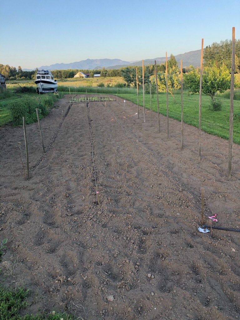 The garden didn’t get installed until Memorial Day. Which is fine – I’m not on a dead-line for getting flowers out to customers, and this year it’s only 225. My daughter-in-law was surprised- and frankly a bit disappointed! I’m happy to report the rows are straighter, and the walk ways are wider this year, hopefully making it easier to take care of.
